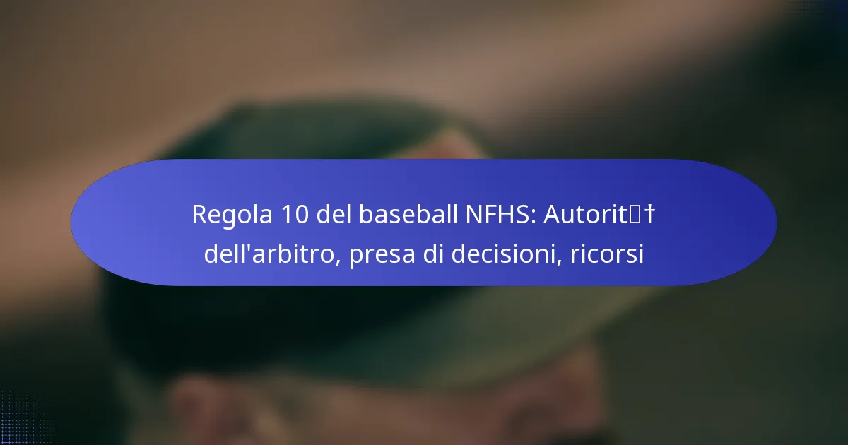 Le regole fondamentali del baseball NFHS includono regolamenti sul lancio, il battuta, la corsa sulle basi e il difesa. Gli aspetti chiave riguardano la zona di strike, il numero di eliminazioni per inning e l’uso corretto dell’attrezzatura. Comprendere queste regole è essenziale per giocatori, allenatori e ufficiali per mantenere un ambiente competitivo e giusto.